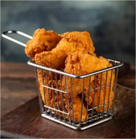 Cinco deliciosas tiras crocantes e tenras de frango.